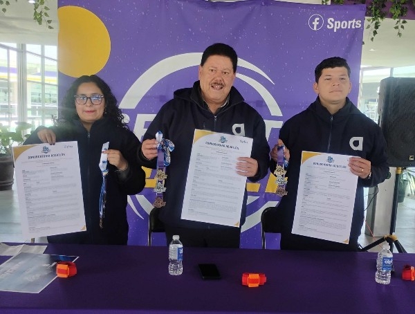 Francisco Martínez Atempa, director de natación del Club Alpha, así como Kimberly Cabrera y Emilio Yris, ambos subgerentes de la misma disciplina, presentaron la convocatoria del Acuatlon 2026 que tiene invitación tanto para la comunidad del Club Alpha como público en general quienes en primera instancia correrán sobre la pista de arcilla, después entrarán a nadar a la alberca y cerrarán con otra carrera sobre la pista, de acuerdo a su categoría.